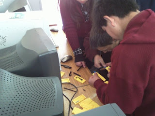 Te mando algunas fotos del trabajo realizado hoy en el taller, en donde los niños y niñas del equipo están armando las piezas de la mesa de desafío.